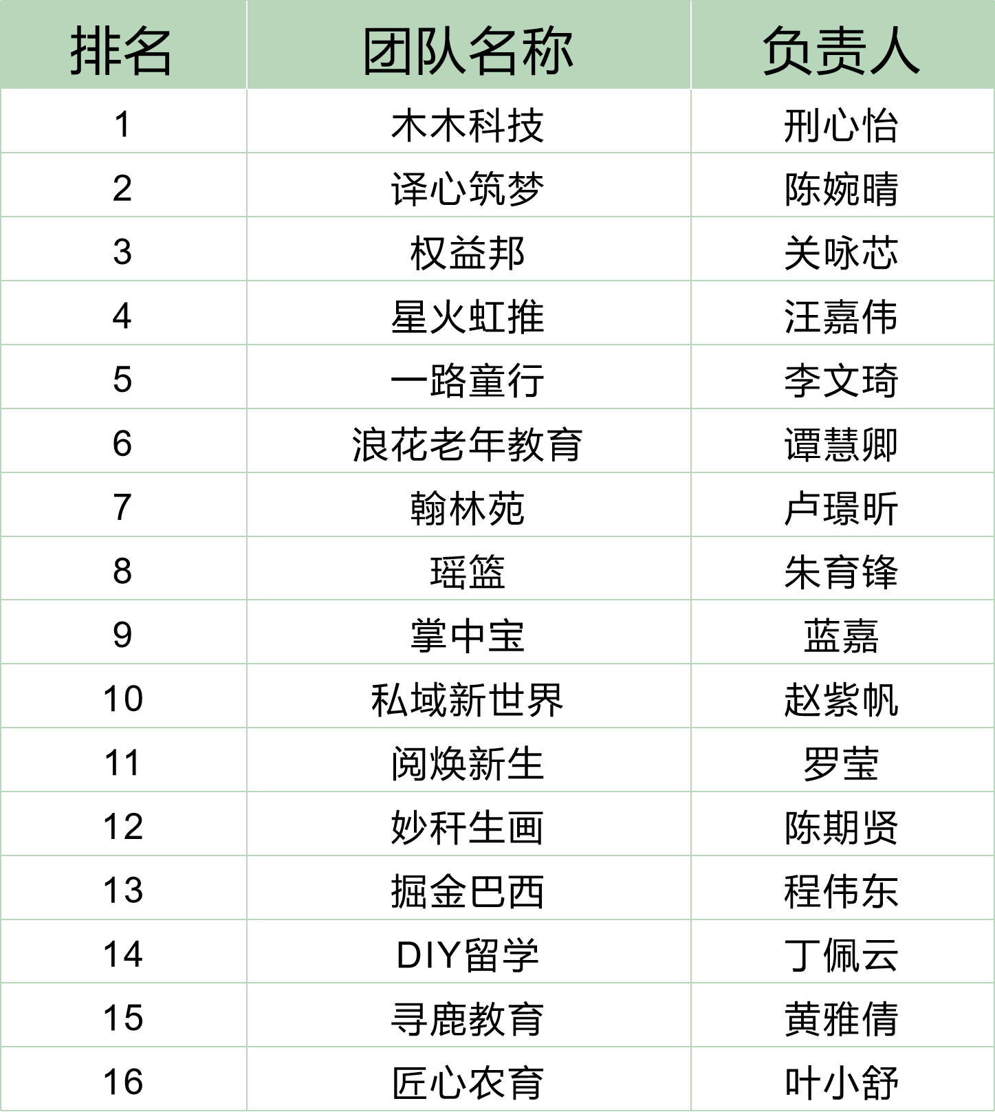 一、入驻大学城校区创新创业中心团队名单(16个)