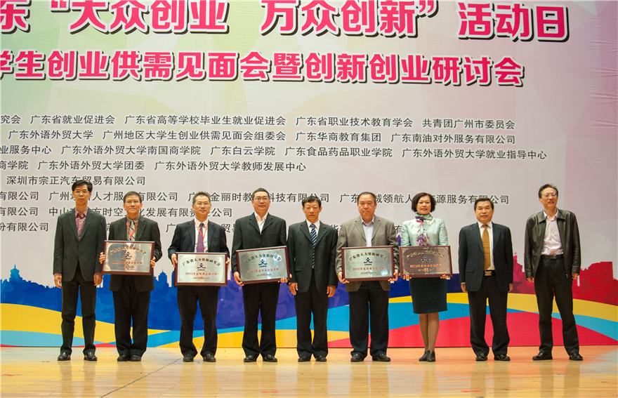 大会期间进行了推动大学生创业贡献奖颁奖仪式,大学生互联网创业研究院、创新创业人才测评中心揭牌仪式和2015年度广东省卓越人力资源奖颁奖仪式。