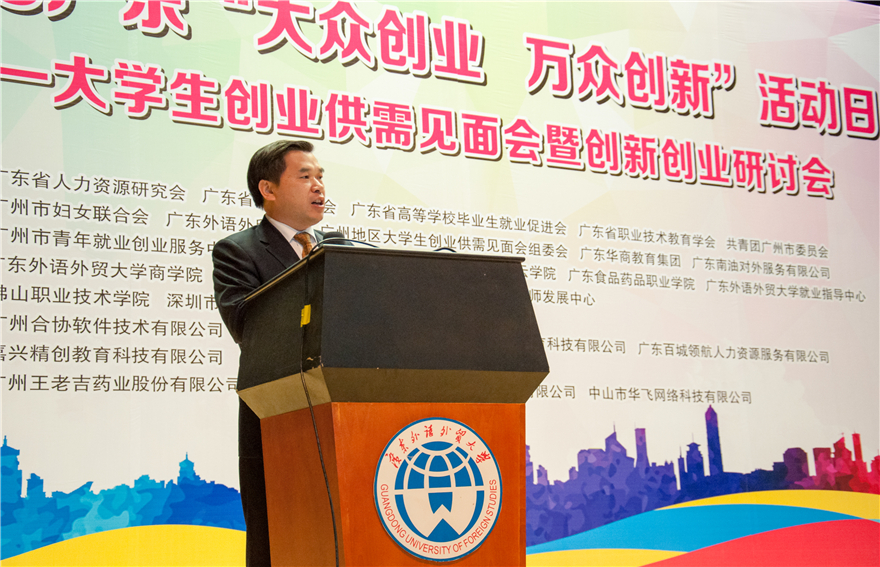 11月27日,2015广东 “大众创业、万众创新”活动日——大学生创业供需见面会暨创新创业研讨会在我校举行。来自广东省高校、企业和政府机构的500多名代表出席,包括高校创业导师学者、企业高管、创客精英、创业服务者、会员代表等。