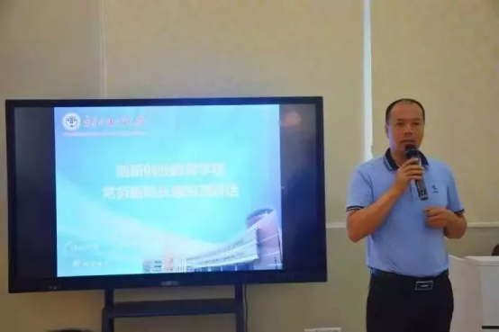 2019年7月1日上午9点整,在我校南校区创新创业实验室(南校区实验楼E110),第三期创新创业训练营正式开始!参加本次训练营开营仪式的有:福建盈浩文化创意股份有限公司董事长周宗佑先生,广州市粤港澳青年创业孵化器有限公司总经理陶媛女士,深圳市信瑞时代科技有限公司CEO胡晨辉先生,重庆万学创世教育科技有限公司华南区区域经理王乾先生,广东青年创新创业学院院长曾准,学生就业指导中心主任、创新创业教育常务副院长康为茂,创新创业教育学院全体老师,以及第三期训练营的全体学员60名同学。本次训练营开营仪式的主持人为创新创业教育学院的副院长肖喜明,在肖喜明副院长精彩的主持下,本次训练营正式拉开了序幕。