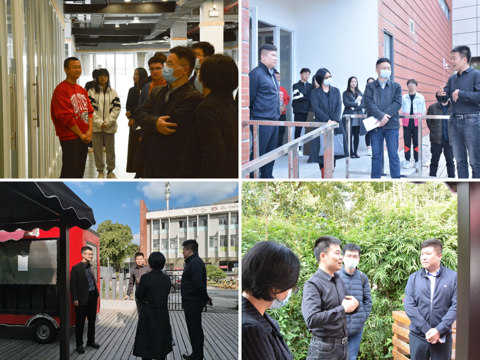 调研组参观南校区创新创业中心,走访了学生创业团队的办公室,与学生团队进行亲切的交流,详细了解学生的创业项目,积极为学生创业团队对接资源,解决学生在创业过程中的困难。肖喜明对创新创业中心的基本概况、功能与定位进行了介绍。据了解,南校区创新创业中心建设历时五年,于2021年9月建成投入使用,目前已入驻学生创业团队15个,推行企业导师驻校制度,建立校企协同育人的长效机制,未来将引进师生共研、师生共创项目,着力将创新创业中心打造成集聚政产学研创新与创业资源的平台,提升我校人才培养质量和服务经济社会发展的能力。