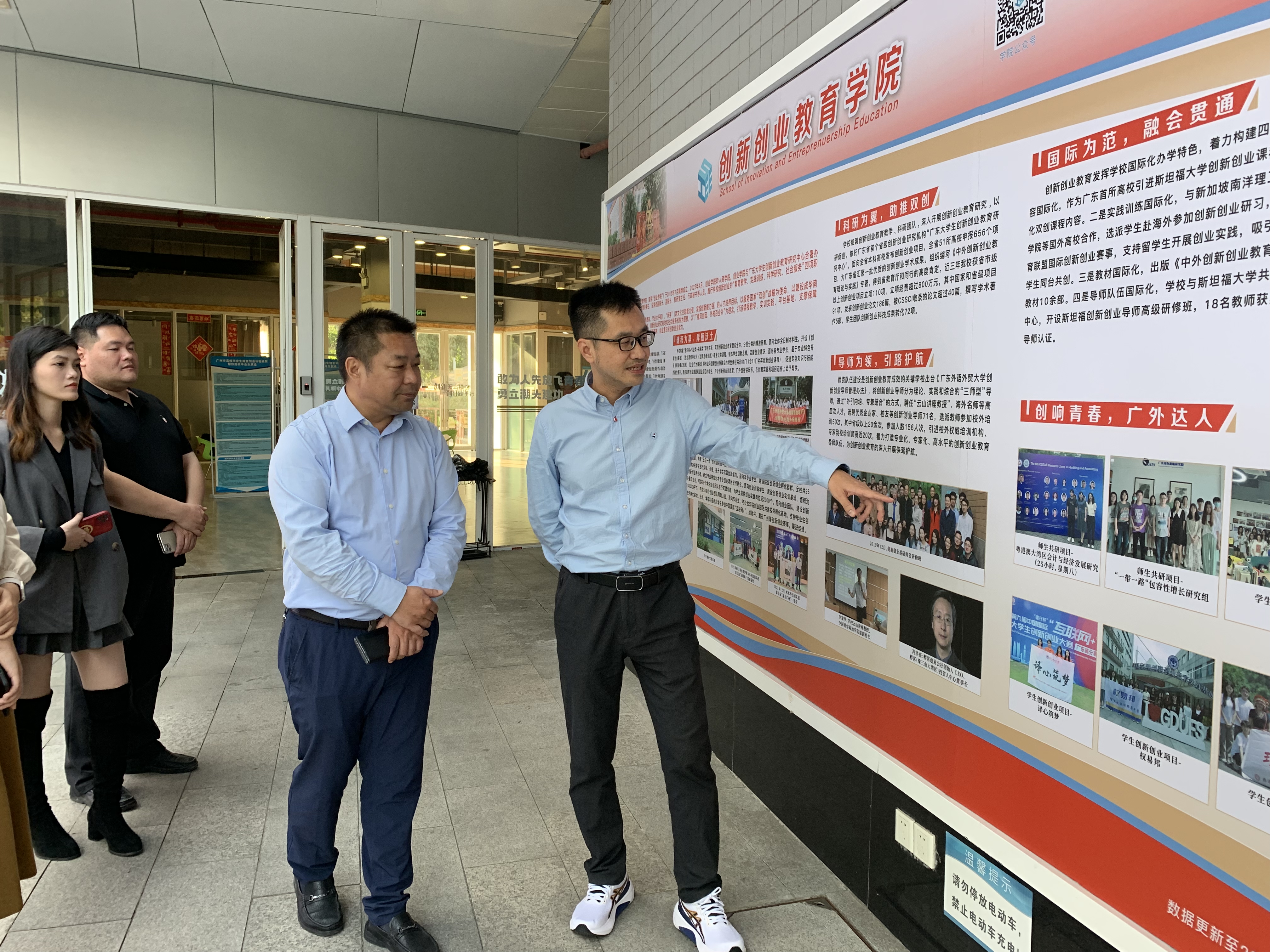 肖喜明带领广东科技学院调研组一行实地参观了我校国家级实践基地,走访各功能活动区域及学生创新创业团队办公室,并与我校学生创新创业团队“译心筑梦”和“木木科技”进行交流。调研组对我校学生团队结合专业特色和广外优势学科开展创新创业实践的做法给与了充分肯定。