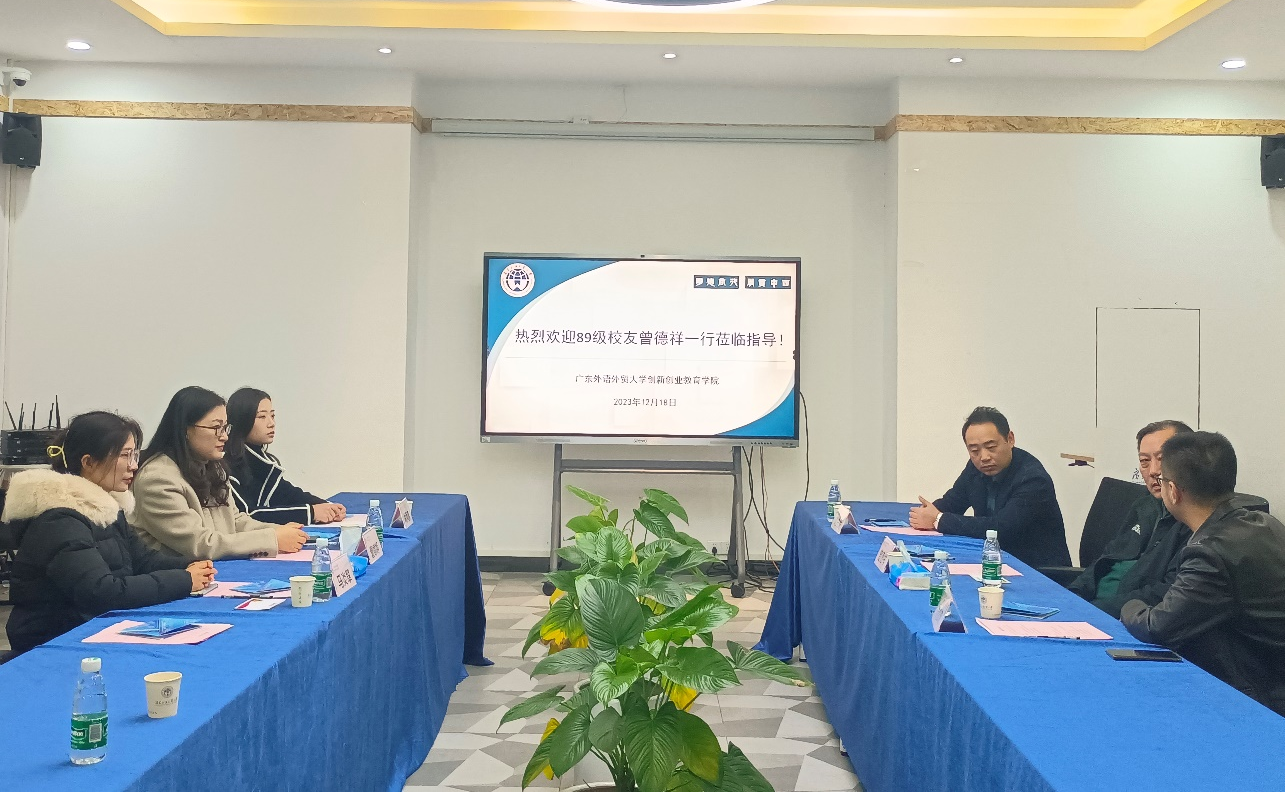 12月18日上午,我校89级校友、广州博冠光电科技股份有限公司董事长、广州开发区政协委员曾德祥到校调研考察国家级创新创业教育实践基地建设情况。商学院党委书记、创新创业教育学院常务副院长肖喜明,学生就业创业中心主任康为茂,创新创业教育学院副院长刘方龙等亲切接待了校友一行。