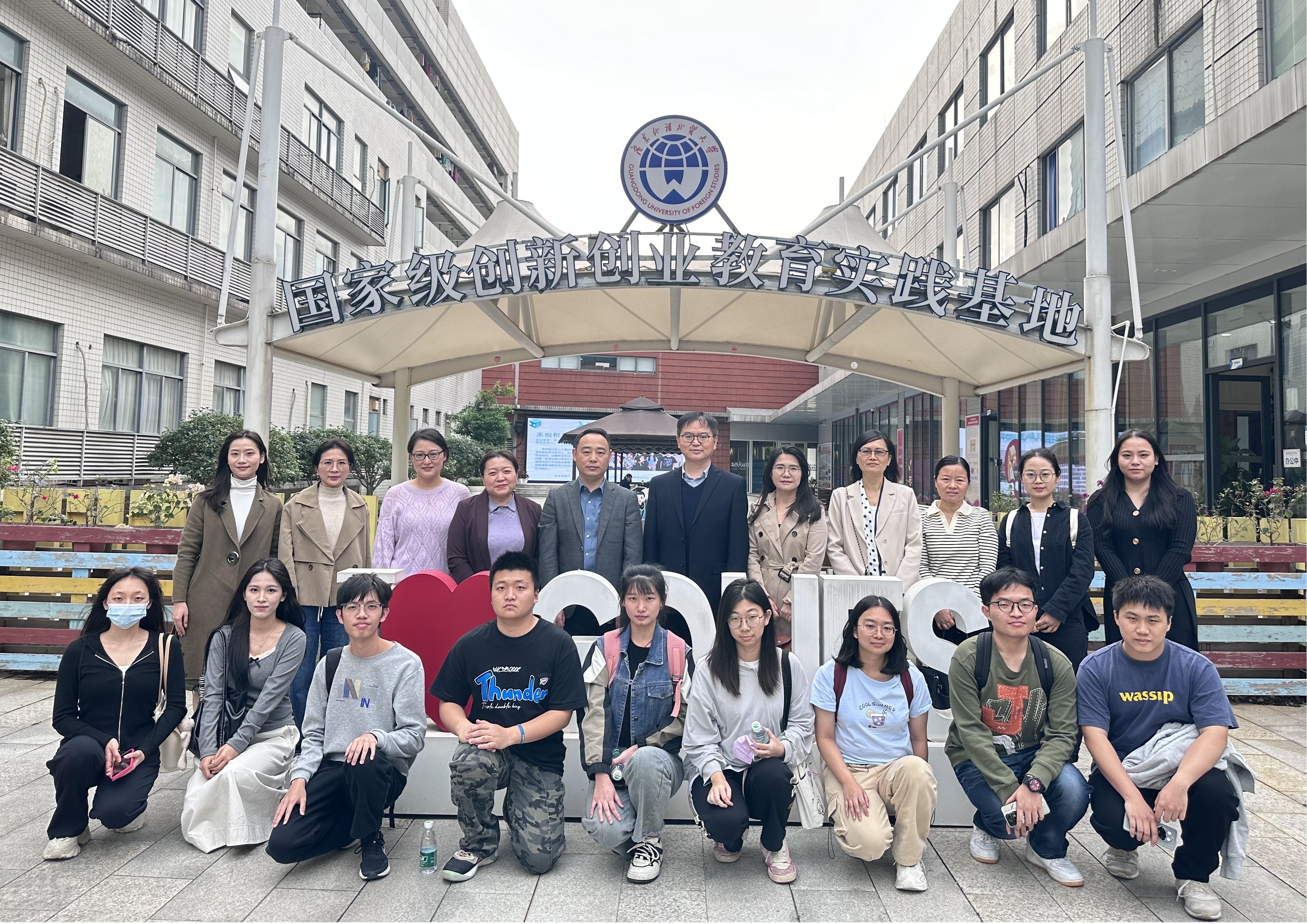 曹婷婷带领广东科技学院师生一行实地参观了我校国家级实践基地,走访各功能活动区域、多功能商事服务中心及学生创新创业团队办公室,并与我校学生创新创业团队“掘金巴西”与“木木科技”进行深入交流。调研组对我校学生团队结合专业特色和广外优势学科开展创新创业实践的做法给与了充分肯定。