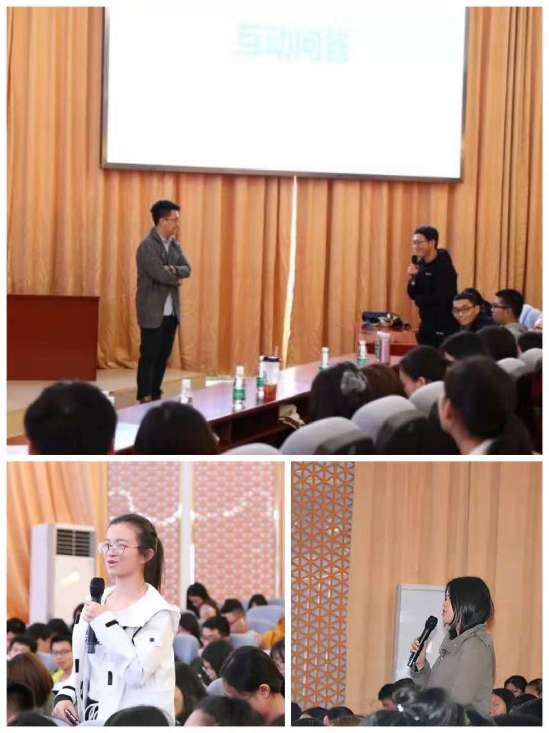 在讲座开始前,主持人杨潇斌提出了几个贴近大学生生活的财经问题,激发了在场学生对财经的兴趣。随后,章艳老师开始了她关于投资的演讲。在演讲过程中,章艳老师以自身实例引出在生活费方面的探讨,并通过此例,向在座听众阐述了投资自己的方面和维度。随后,章艳老师鼓励听众投资自身应从兴趣出发,多维度进行学习,不断提高自身综合素质,从各方面投资自己。章艳老师在此论及的投资方面有兴趣、形象、健身、消费选择以及读书。在讲座中,章艳老师的独到观点引起了在座听众嘉宾共鸣,引发了大家对投资这一概念更进一步的认识。