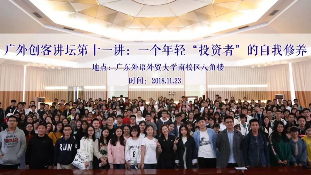 11月23日,广外创客讲坛第十一讲在广东外语外贸大学南校区八角楼举行。本次讲座由央视财经频道著名主持人章艳主讲,演讲主题为一个年轻“投资人”的自我修养,近300名广外学生参加本次讲座。讲座由广外创新创业教育学院杨潇斌老师主持。