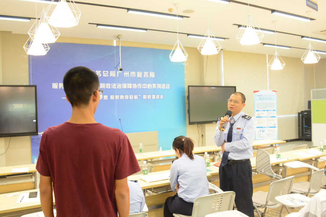 接着,康院长指出,正值“个税收宣传月”,为更好助力同学们创业,我们邀请了广州市税务局和白云区税务局的税务干部们为我们解答资金、政策、税收等方面疑惑。并鼓励同学们珍惜机会,多积累这方面的知识。