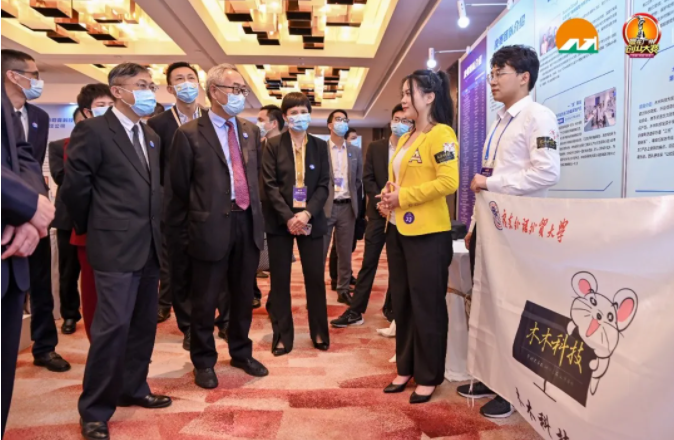 本次决赛设立多功能展览展示专区,集中展示各优秀创业项目。木木科技团队向广东省人力资源和社会保障厅、广州市人民政府、广州市人力资源和社会保障局等单位领导介绍项目的初心使命、发展历程和实际成效,创业学院林秀燕老师汇报我校为学生创业实践提供的场地、资金、辅导等全方位支持,充分发挥创业带动就业的效能,为大学生的创业、就业贡献高校创新创业力量。广州市人民政府副秘书长马曙、广州市人力资源和社会保障局党组书记、局长王健充分肯定木木科技项目在带动就业方面的成绩,寄语项目取得更大的成绩和突破。