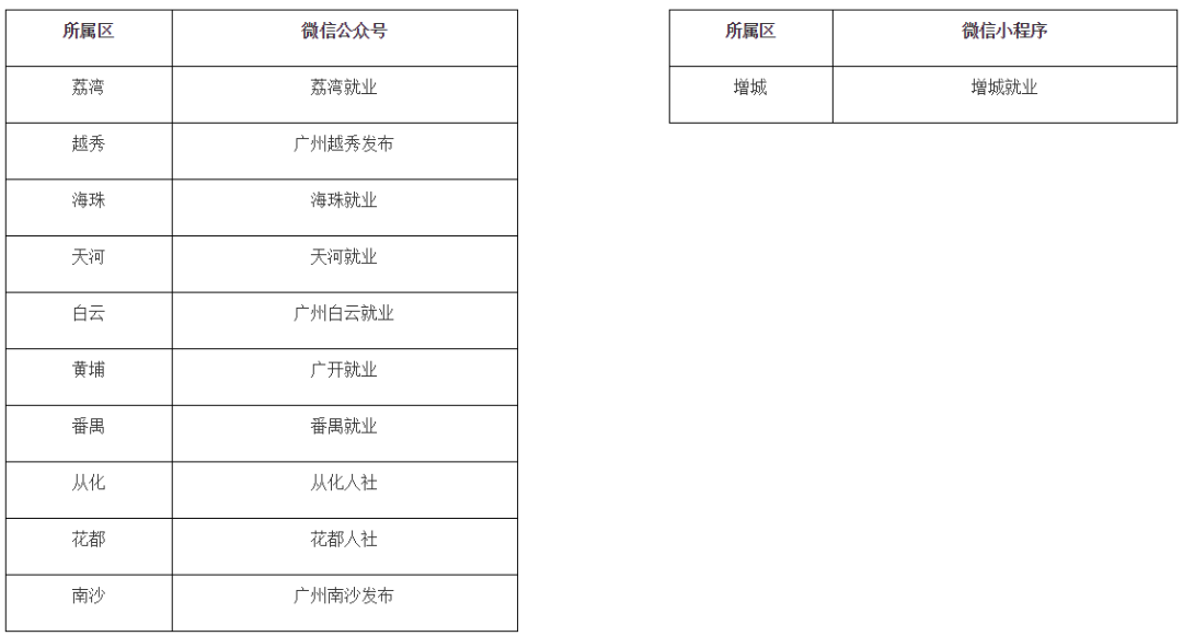 3.按单位所属区关注各区公共就业服务机构微信公众号或微信小程序: