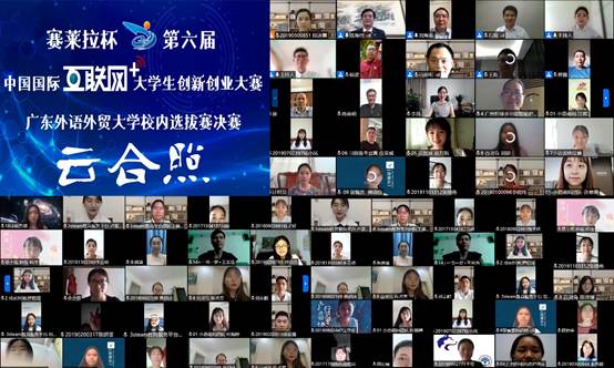 赛莱拉杯·第六届中国国际“互联网+”大学生创新创业大赛校内选拔赛自2月份启动,学校近1500个学生创新创业团队参赛、超7000人次参赛,参赛学生人数创造历史新高。“云路演”由10分钟路演展示和5分钟答辩组成,根据“互联网+”赛事规则,分为高教主赛道和青年红色筑梦之旅赛道,其中高教主赛道团队有11个项目,分别是:关注少儿国学教育领域的小鹿萌妈团队、专注亲子教育的成长时光团队、建设课程教具培训三位一体的大学生兼职steam教育服务平台团队、致力于解决老年人健康护理问题的广州恒琢科技智能护理床团队、打造小语种外贸法律服务平台的“法贸通”团队、创建静心备考社区的习院团队、打造专业口语矫正的小语说团队、专注“互联网+语言康复”的百灵鸟团队、建立老年人再就业互联网平台的银鬓客团队、专注于个性化美妆的妙哉团队、关注智能化网络安全的网御骑士团队。青年红色筑梦之旅赛道有4个项目,分别是:多语言扶贫兴粤先行者译心筑梦团队、致力于解决儿童性教育缺失问题的一路童行团队、以书承载梦想的一书一梦团队、打造优质农产品品牌的饴农团队。经过云路演与答辩,最终“译心筑梦”团队突破重围,斩获本次比赛的特等奖。此外,23位项目指导教师获“优秀创新创业导师奖”,13位项目指导老师获“课程赛道优秀指导教师奖”。
