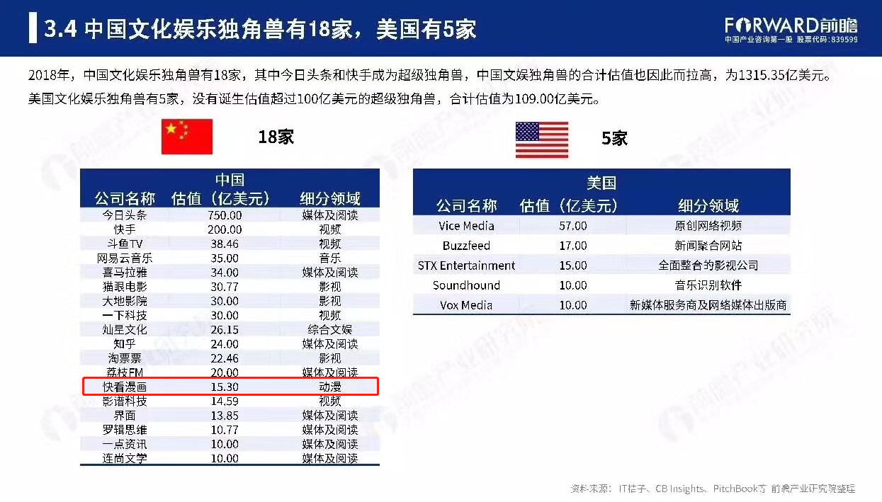 8)2018年,数据显示,快看漫画市值已达15.3亿美元,成为中国文化娱乐独角兽企业。同年七夕,快看漫画上映首部大电影《快把我哥带走》。