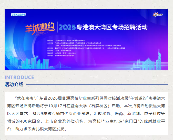 10月17日“羊城邀约”来袭,400家+名企携大湾区优质岗等你Pick