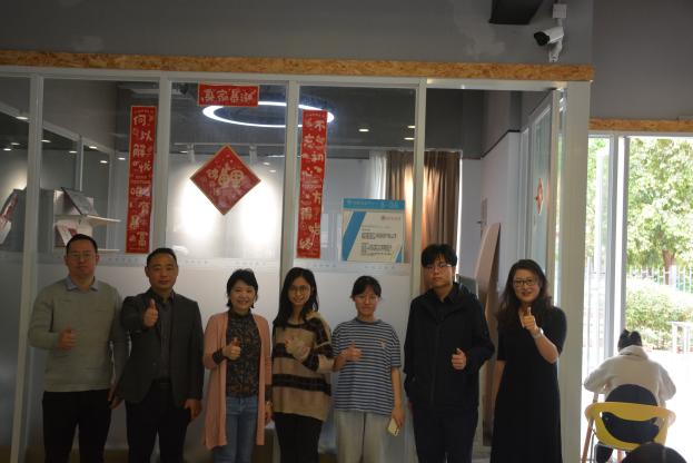 刘方龙陪同来访嘉宾走访国家级创新创业教育实践基地的各功能区域设施,并与入驻的创新创业项目学生成员亲切交流。吴建勋一行对我校国家级创新创业教育实践基地的建设成果表示赞赏,对学生创新创业项目成员的沟通与创新能力给予极大肯定。
