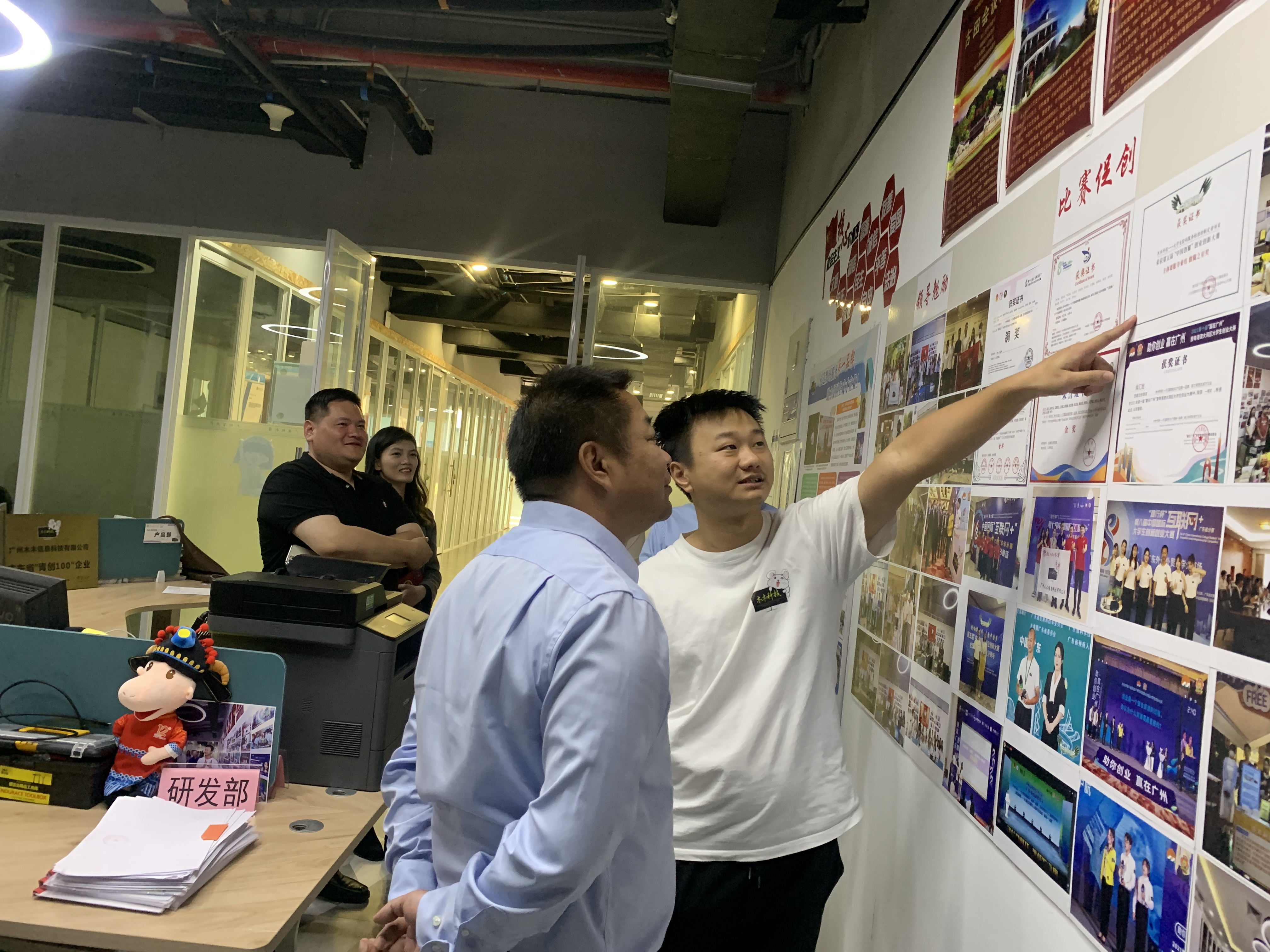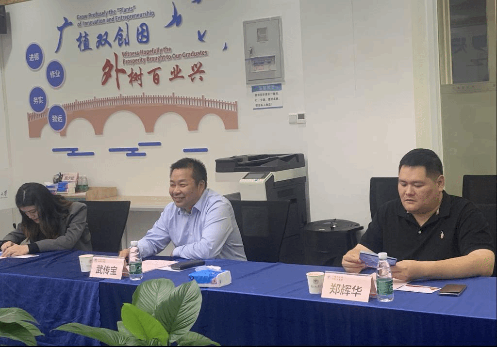 肖喜明对武传宝一行来访表示欢迎,并简要介绍我校国家级实践基地建设情况、创新创业教育定位与内涵、以及创新创业教育实践平台建设经验。武传宝表示,广外创新创业教育制度健全、功能完善,同时有先进的教育理念和花园般的孵化环境。广东科技学院一行希望通过此次参访,学习借鉴广外在“互联网+”等实践竞赛、大赛成果转化等方面的先进经验,推动学院创新人才培养层次提升。双方还就创新创业课程建设、双创孵化场地管理及赛事项目管理等议题进行了交流。