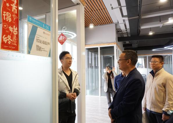 番禺区政协调研组一行实地考察我校政协委员个人工作室运作情况,重点了解工作室日常接访群众、倾听社情民意情况。随后调研组走访国家级实践基地的入驻学生创业团队,并与“浪花智慧助老”“木木科技”团队进行交流。陈琨主任表示,政协委员工作室可以挖掘并发挥政协委员的优势及力量,结合大学城内学生创业就业情况,给予相对应的支持。来访政协委员们对广外创客敢于创新、勇于实践的精神给予了高度肯定。