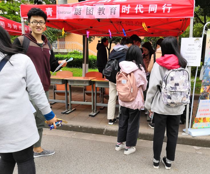 12月13日,广外创业成果展暨人才交流会在广外南校区校道举办,本次活动由广外创新创业教育学院主办、广外创业协会承办。此次创业展共有11支创业团队参加,它们分别是:慧心英语、韩语狙击手、心火传疆公益队、雅米团队、义客创发团队、大咖工作室、留球子、最优解数码、咕咚咕咚、Wisetrue蔚图教育、伴伴公益。