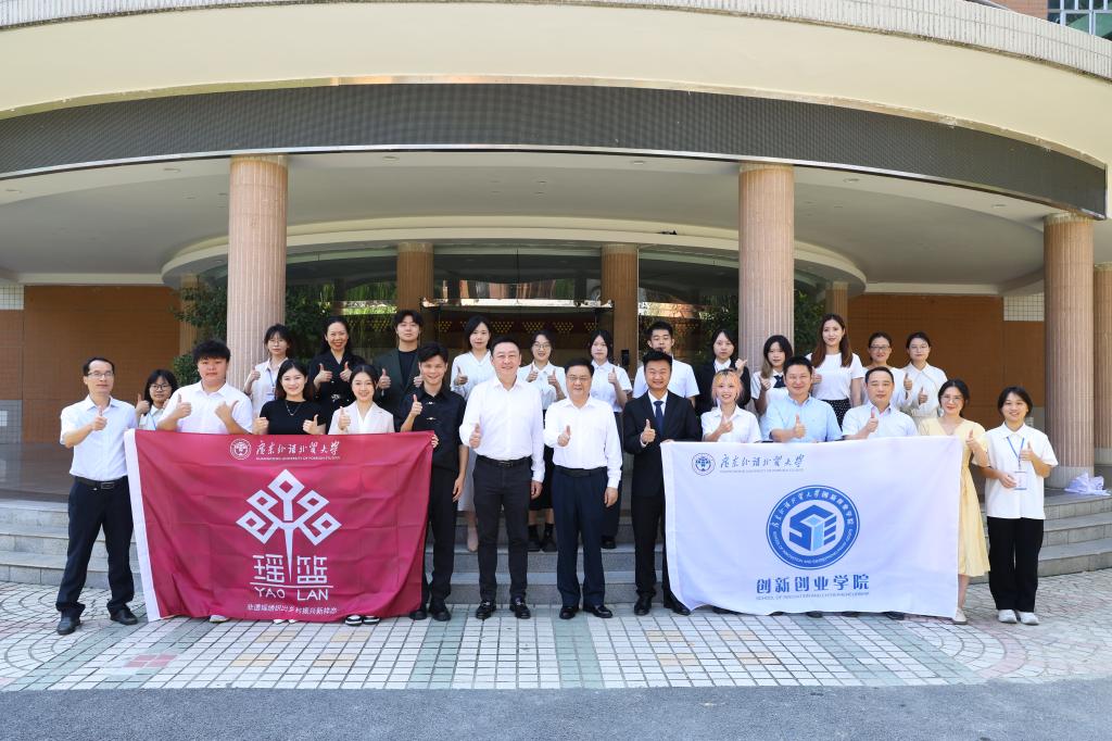对即将出征的团队及导师,石佑启书记提出三点要求:一是知行合一,实践求真。他勉励师生在实践中求真知、练就真实本领,用汗水、智慧、意志和行动在总决赛舞台上浇筑青春风采底蕴;二是崇尚实学,坚持实干。要干在实处,拼在实处,他赞赏团队师生以所学所长助力瑶族绣娘增收,以实干拼搏诠释坚守奉献;三是勇于拼搏,锐意进取。在强手如林的决赛舞台上,要敢于亮剑展示广外学子风采,脱颖而出。 最后,石书记勉励决赛团队沉着应战,正常发挥,平安启程,凯旋而归。