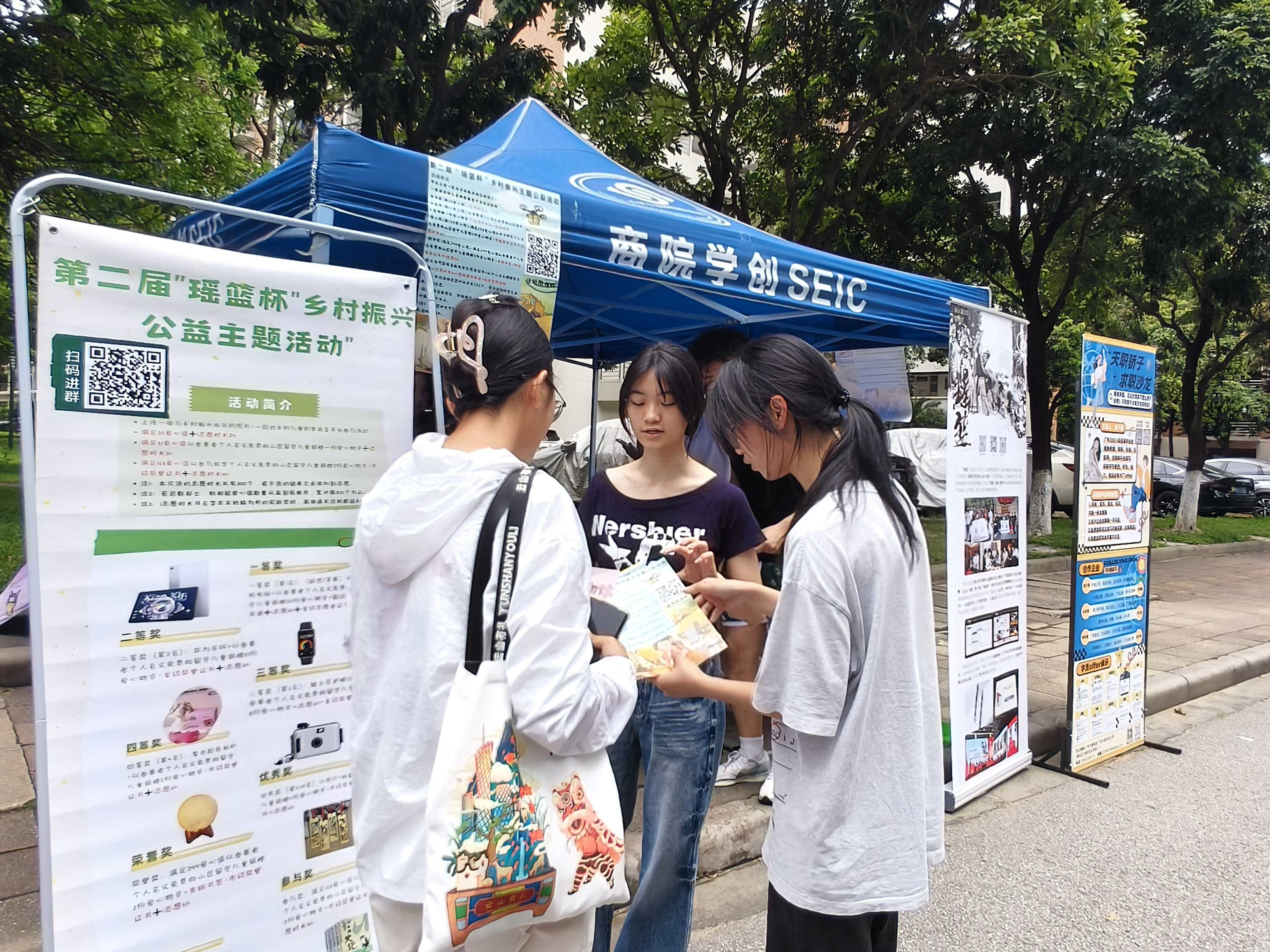 从非遗焕新到AI赋能、从乡村振兴到前沿科技,各团队用创新点燃想象!「瑶蓝」瑶绣出海、「Tyndall星光」AI绘本、「浪花智慧助老」助力银发族方便生活……科技与人文碰撞,商业与公益交融。打卡互动区人气爆棚,同学们与团队成员围绕产品创意、项目前景等话题展开深入交流,各团队也详细讲述了团队成立经历与最新成果,一同见证创意变为现实的闪光时刻!
