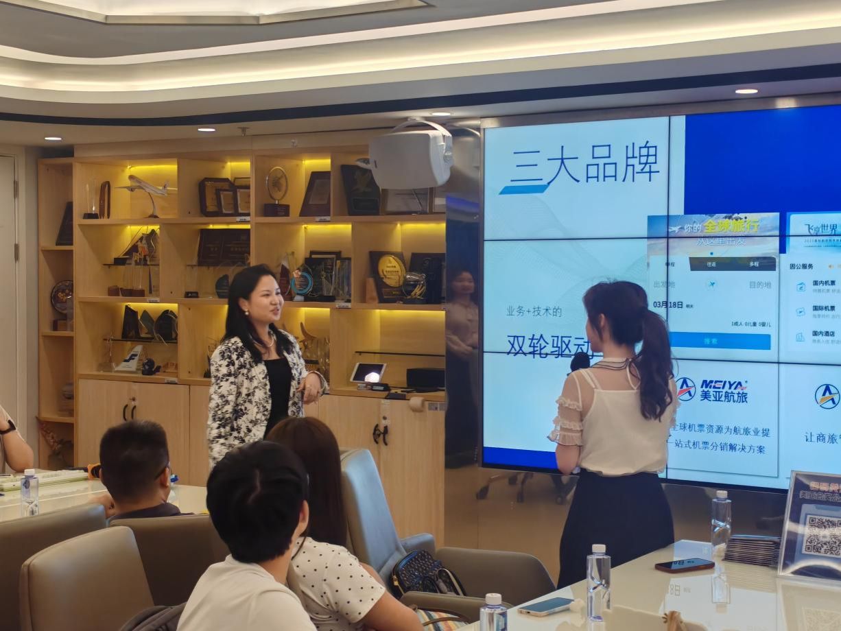 随后,美亚集团人力资源负责人为师生们进行了系统介绍。她详细阐述了美亚集团从创立至今的发展脉络,并重点讲解了集团旗下三大核心事业部——美亚航旅、美亚商旅、美亚会奖的业务分工与协同模式,还详细介绍了美亚与包括中国南方航空在内的众多重要合作伙伴关系,分析了美亚在旅游科技领域的核心优势与目标市场,使同学们对企业的战略布局和市场定位有了清晰认识。
