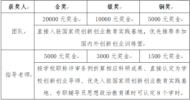 奖项分为教育部、广东省和学校奖项,教育部、广东省的奖励内容以上级文件为准,详情可登录“全国大学生创业服务网”(cy.ncss.cn)了解。