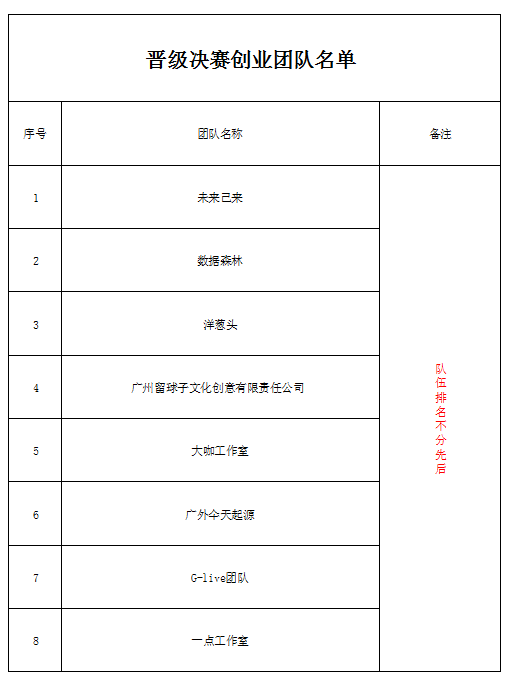 以下是半决赛晋级名单(比赛排名不分先后)