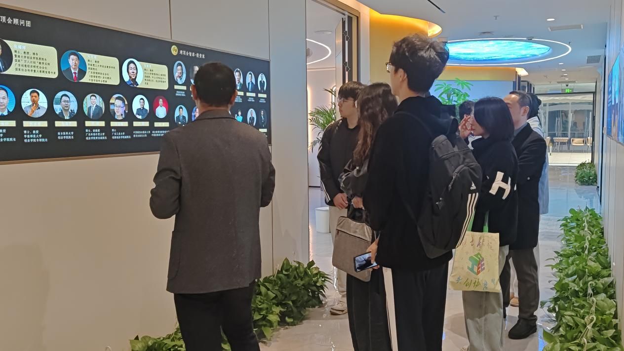 师生一行首先参观了湾顶会创业中心展厅,在负责人员的介绍下,了解其在新材料、物联网、健康医疗等领域累计投资培育的30余家高新技术企业的最新成果,对“载体+投资+产业”的全链条孵化模式有了深刻认识。