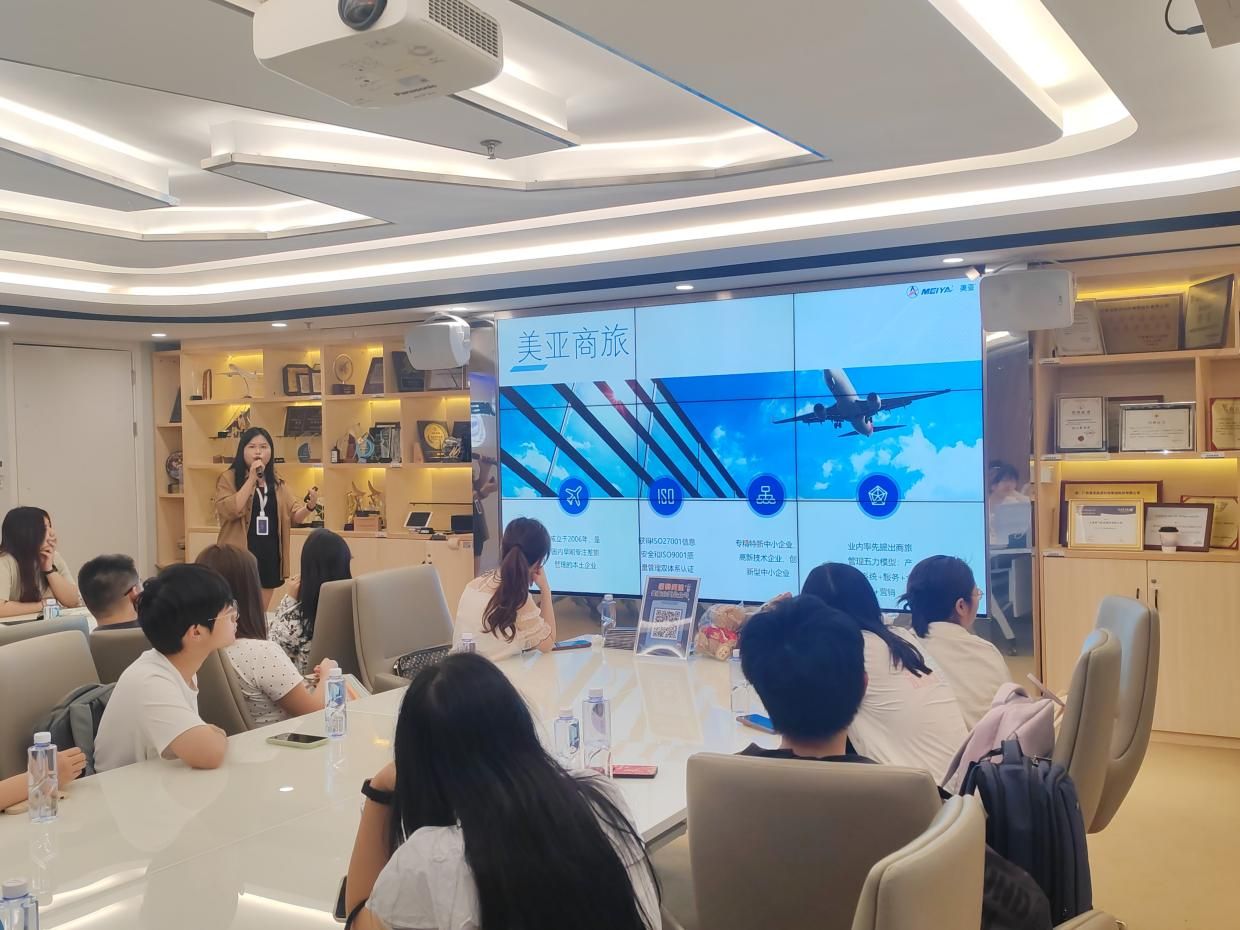 随后,美亚集团人力资源负责人为师生们进行了系统介绍。她详细阐述了美亚集团从创立至今的发展脉络,并重点讲解了集团旗下三大核心事业部——美亚航旅、美亚商旅、美亚会奖的业务分工与协同模式,还详细介绍了美亚与包括中国南方航空在内的众多重要合作伙伴关系,分析了美亚在旅游科技领域的核心优势与目标市场,使同学们对企业的战略布局和市场定位有了清晰认识。