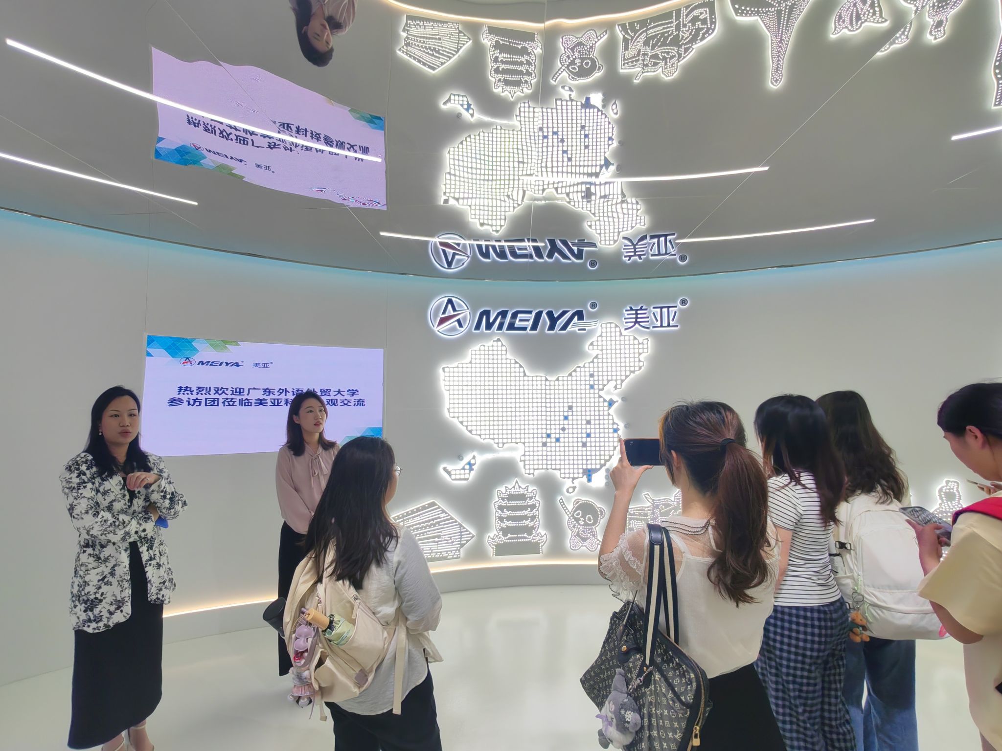 活动伊始,美亚集团总经理赵丽萍首先安排工作人员带领师生参观了企业文化展厅, 直观了解了美亚集团的发展历程、企业文化与组织架构 ,为后续深入交流奠定了良好基础。